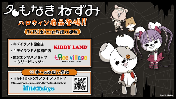 マインドワークス•エンタテインメント(東京都千代田区、代表取締役近藤健祐)がライセンス展開を行なう「名もなきねずみ」の新作描き下ろしハロウィンイラストを使用したグッズが、9/13(金)より順次、キデイランド原宿店、キデイランド大阪梅田店、総合エンタメショップ~ツリービレッジ~、iine Tokyoオンラインショップにて販売を開始いたします。