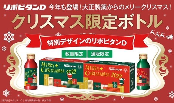 大正製薬株式会社[本社:東京都豊島区 社長:上原 茂](以下、当社)は、「リポビタンD クリスマスボトル2022」を11月15日(火)より、数量限定で当社通販サイト「大正製薬ダイレクト」にて販売を開始します。