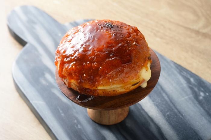 通常メニューとしてご提供する、品川天王洲アイル店だけしか買えない「プリンブリュレ」(380円)は、北海道産の生クリームに北海道産の牛乳を使用したカスタードクリームとソルティーなキャラメルシロップをブレンド、濃厚なプリン味を再現した品川天王洲アイル限定生ドーナツです。
