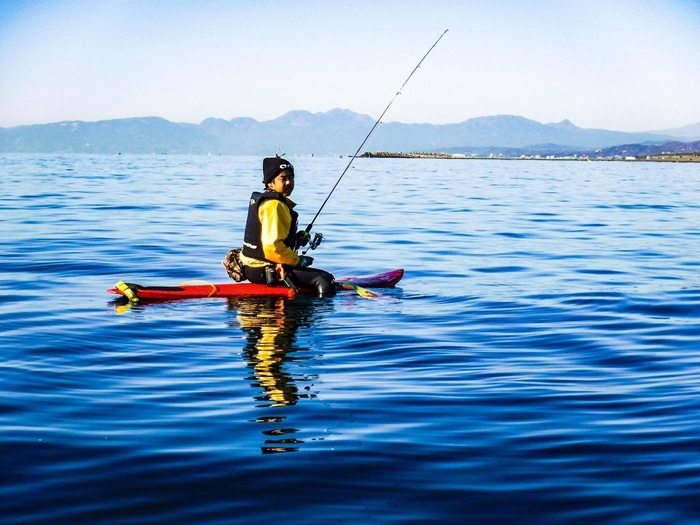 「SUP釣り」とはサーフボードの一種「スタンドアップパドルボート」を使った釣りのこと。浜からパドルで沖に漕ぎ出し、ポイントを探り当てます。ボートやカヤックよりも手軽に楽しめることで近年人気が高まっています。