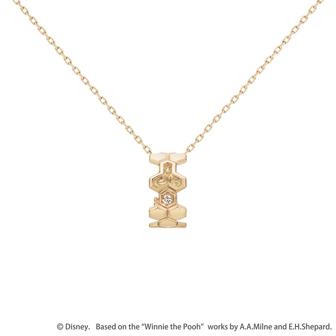 「くまのプーさん」 新作ネックレス&ピアス “幸せを溜めこむ”幸運のモチーフ、ハニカムをデザイン