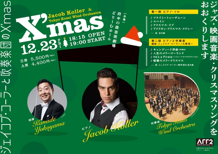 ジェイコブ・コーラーは実力派の人気ピアノ・ユーチューバーで、コンサートだけでなく、街角ピアノなどの演奏でも観客を魅了してきました。これまで様々な演奏家と共演してきましたが、吹奏楽団との本格的な演奏は初めてです。本コンサートのために吹奏楽を知り尽くした大橋晃一と共に吹奏楽とピアノを編曲し、新曲も発表します。若手実力派の指揮者・横山奏を迎え、東京佼成ウインドオーケストラとともに府中の森芸術劇場どりーむホールを華やかなサウンドで満たす特別なクリスマス・コンサートです。