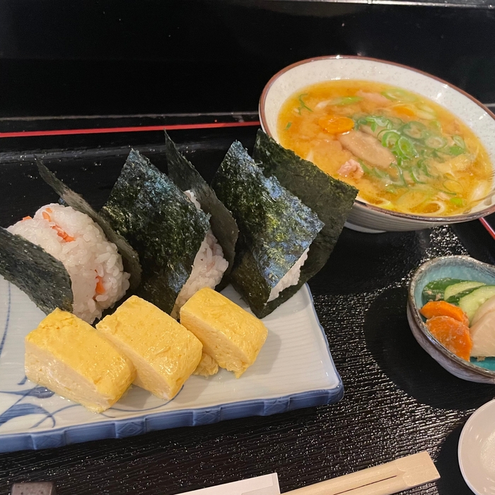 オープン記念特典として、10月7日までの期間限定で、おにぎり豚汁セット(おにぎり✖️3ヶ、豚汁、出汁巻き玉子、糠漬け)が通常の980円から、200円引きの780円でご提供されます。また、豚汁セット(豚汁、ご飯、出汁巻き玉子、漬物)も、通常の880円から680円にお得にお召し上がりいただけます。