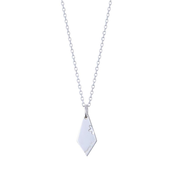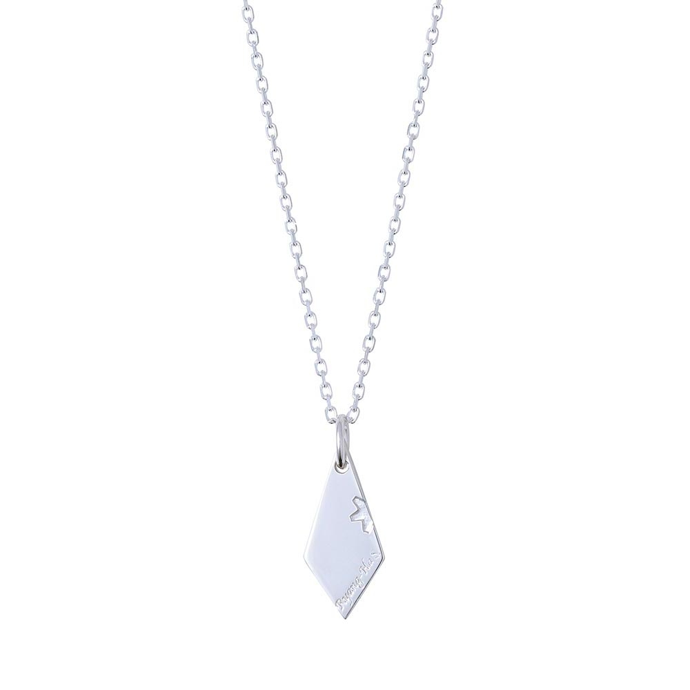 裏面には名前と、ホローポイント弾の花が開くような様子を表現したアイコンを刻印しました。こちらのアイコンは別売りの「リャンハモデル」のネックレスと合わせるとモチーフが浮かび上がります。
