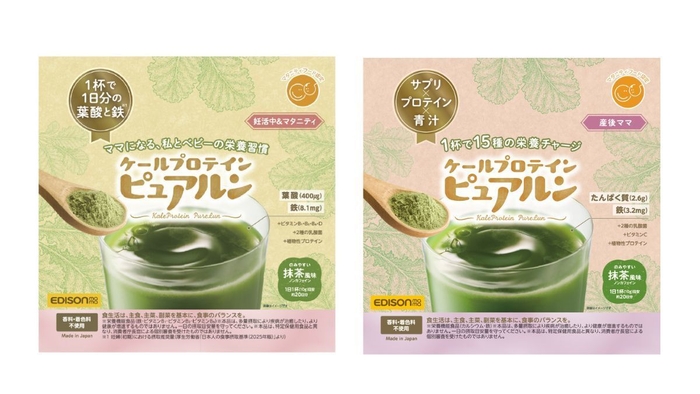 ベビー用品ブランド「エジソンママ」を展開する株式会社ケイジェイシー(本社・東京都品川区 代表取締役社長:崔(チェ))は、妊活中&マタニティ、授乳期に必要な栄養素を摂取できる、国産ケールを100%使用した抹茶風味の甘くてのみやすいプロテイン「ケールプロテイン ピュアルン」2種を2025年9月18日に新発売いたします。