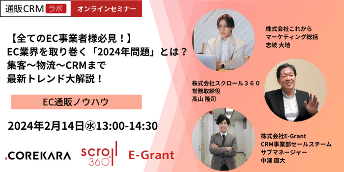 EC特化CRMツール”うちでのこづち”を提供する株式会社E-Grant(東京都品川区 代表取締役CEO:向 徹、 代表取締役COO北川健太郎、以下:イーグラント)は、通称「2024年問題」とされるECを取り巻く物流業界の現状について専門家を招いて解説していただく特別セミナー、