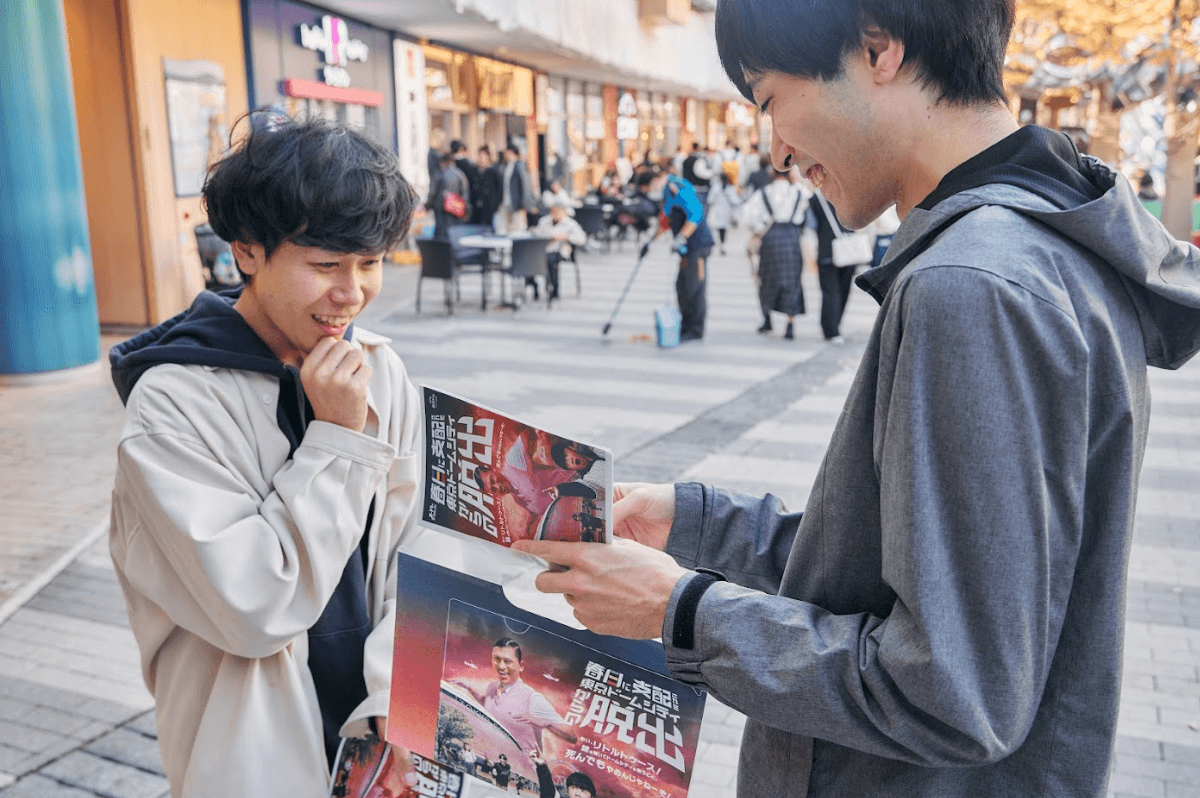 すると、東京ドームシティを歩いていた人々が足を止め、
