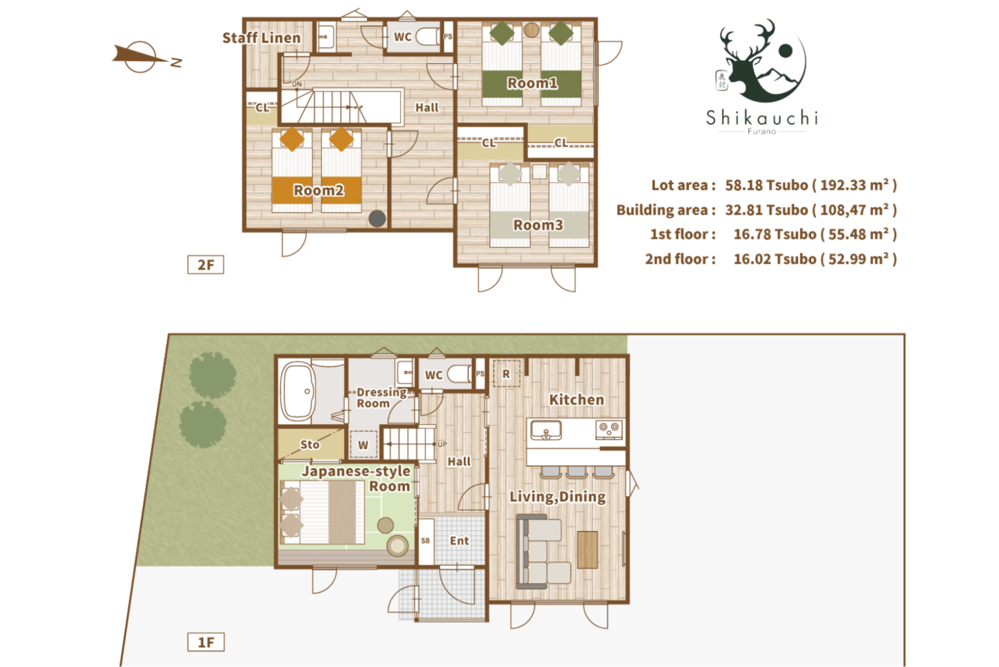 「Shikauchi Furano」は一戸建て物件貸切型の民泊施設です。
