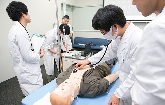 最近の薬剤師国家試験では、「実務」とその他の科目の複合問題や、複数の科目を組み合わせた連問が出題される傾向があります。第107回では「化学」・「法規」・「衛生」にまたがる3連問が話題となりました。このような複合的な問題に対しては、精緻なPBL(Problem Based Learning)方式を導入した本学部の「薬物治療マネジメント」が高い効果を挙げています。数人の学生がグループになって疾患の検査値を読み、体の状態や最適な医薬品、注意点などをディスカッションすることで「深い学び」を実現しています。