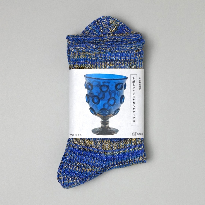 この宝物が持つ瑠璃色の世界を、「SOUKI ORIGINAL - 和紙とシルクのやわらかソックス -」で表現しました。
