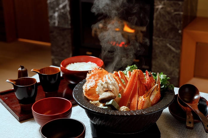 ・信州プレミアム牛、昆布出汁と味噌だまりを使った醬油味ベース の寄せ鍋 または、ズワイガニを使った塩味ベースの寄せ鍋