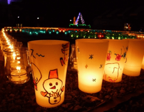 12月24日のクリスマスイブに、協力団体・来園者が絵を描いたキャンドルカップを並べて、キャンドルアートの点灯式を行います。