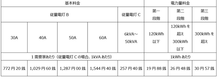 ■電気料金表
