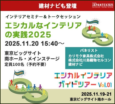 素材を確認したくなる製品をパネルで紹介! 「JAPANTEX 2025」で建材ナビが、 その場で閲覧できる素材カタログコーナーを出展 | NEWSCAST