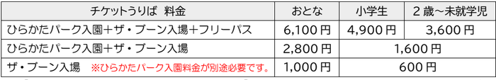 ※「ザ・ブーン」入場券は、オンラインチケットサイト「アソビュー!」での販売となります。当日残数がある場合に限りチケットうりば、園内のインフォメーションでも販売いたします。