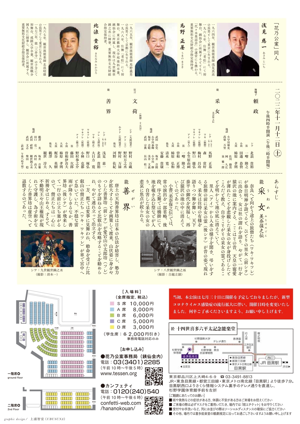 学生席:各2,000円引き(※花乃公案事務局電話対応のみ)