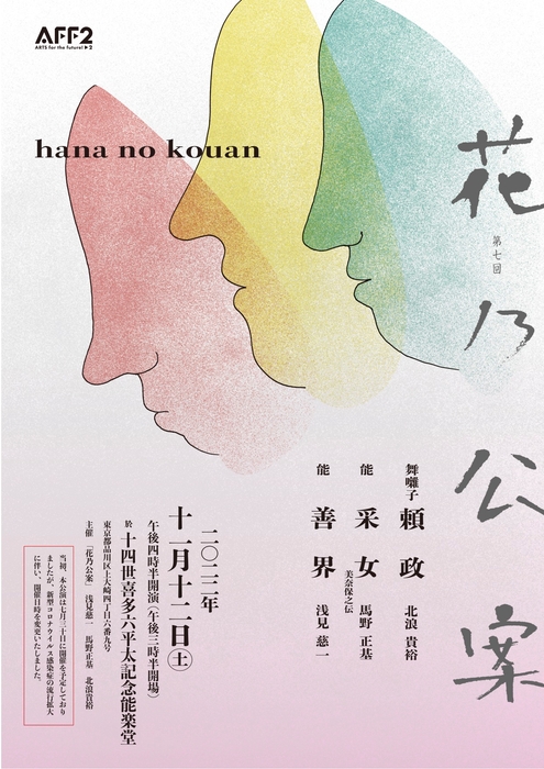 国内外で活躍する観世流能楽師3名が主催 『第7回花乃公案』7月に中止となった延期公演が決定 カンフェティでチケット発売
