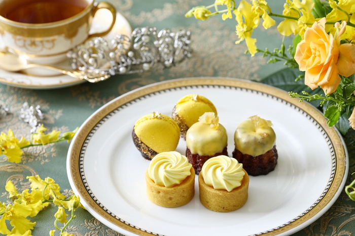 フランスの王妃となる前、少女だった頃の“マリー・アントワネット”がテーマのアフタヌーンティー。オーストリア首都ウィーンにあるシェーンブルン宮殿の庭園で過ごす天真爛漫な姿を、マンゴーやパインなど旬の果実とスイーツで情景描写しました。スイーツスタンドの1段目は、ヨーロッパの名門・ハプスブルク家の皇女としての品格をもち、バレエや音楽の芸術に優れた才色兼備さを“プリンセスパフェ”と“クグロフ風マンゴームース”で表現。2段目は、宮殿で過ごす華やかな日々の中、社交界で優雅に踊る“マリーアントワネット”を、 “シャンパンジュレのパンナコッタ”と“オペラ”で彩鮮やかに表現しました。3段目は、フランス伝統菓子をご用意。“マリー・アントワネット”が生きた時代から受け継がれてきた味わいに想いを馳せながら、レモンを使い爽やかに仕上げたマカロン、カヌレ、タルトをお楽しみいただけます。