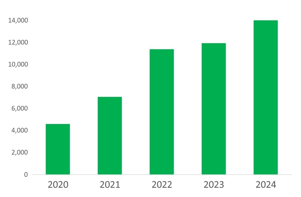 2024年度の宿泊者数は、コロナ禍のスタートとなったオープン初年度から約3倍に増え、年間約14,000人となりました。宿泊者層も大きく変わり、若いファミリーやグループが増え、インバウンド観光客も増えつつあります。