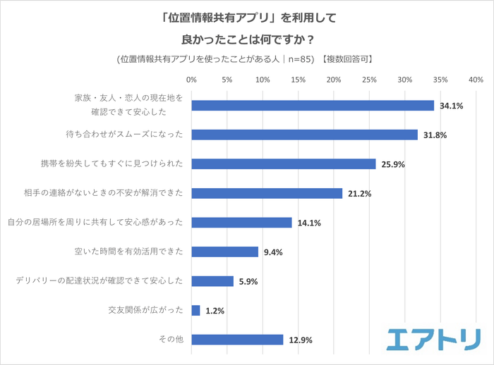 「家族・恋人・友人の現在地を確認できて安心した」が34.1%