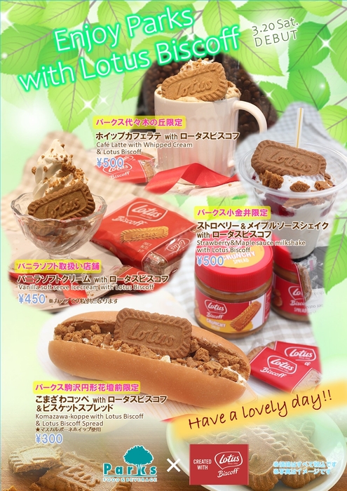 赤いパッケージでおなじみのカラメルシナモン味のベルギー菓子「ロータスビスコフ」と都立公園の売店「Parks」がコラボレーションし、限定メニューの販売を開始しました。いつもの公園で、ぜひお試しください。