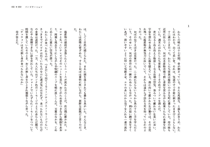 この本には初期の短篇小説が四篇収められています。飾られていない生のままの欲望、一途に物語を追う不器用な愛情が凝縮されています。わたしの書いた物語がより多くの方たちに、垣根なく届いてくれたら、そうして見知らぬ世界に、活字と想像力だけで夢中になれる経験をプレゼントできたらと思います。言語の壁を超えて、ここにこめられた未熟ながらも真摯な心が、日本の読者のみなさまに伝わることを願っています。