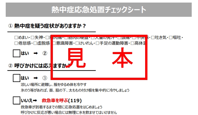 出典:環境省熱中症予防情報サイト 熱中症の対処方法(応急処置) https://www.wbgt.env.go.jp/heatillness_checksheet.php