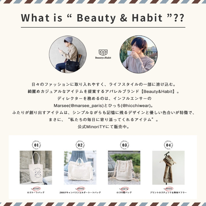 MinoriTYにて取り扱っているアパレルブランド『Beauty & Habit』。ディレクターのMARSEE、ひっちの2人と、人気インフルエンサー・つぐ吉が来店し、店頭にて実際に接客・販売を行います。
