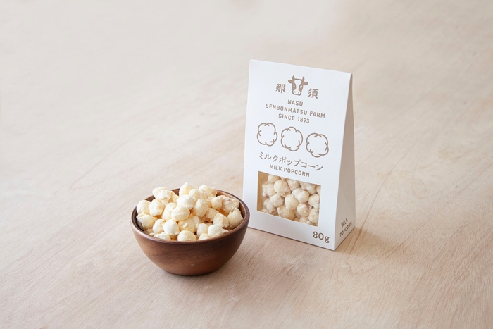 千本松牧場牛乳入りミルクジャムを使用したポップコーンです。