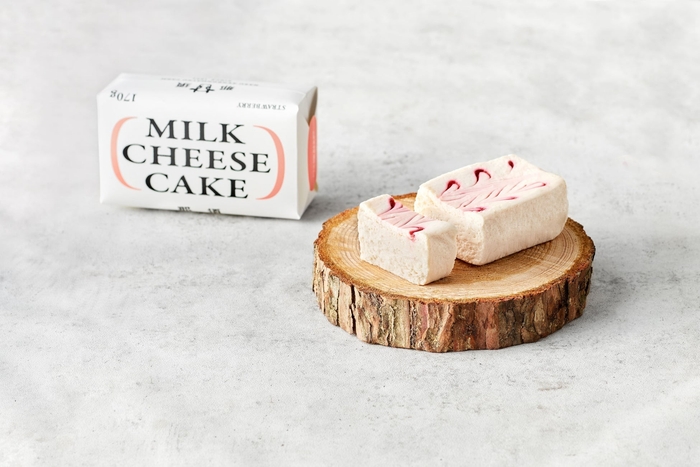 チーズケーキに使用できる最大量、ケーキ全体の15%に牧場のミルクを使った、あたらしい”ミルクチーズケーキ”。 さっぱりなのにコクたっぷり、”ふかふか、こっくり”みずみずしい食感とミルクの豊潤な味わいが特徴です。