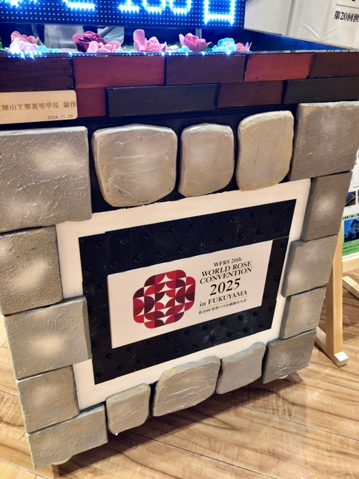 広島県立福山工業高等学校の生徒が、各学科の特色を生かし世界バラ会議福山大会開催までの日数を表示するカウントダウンボードを製作しました。市民や来訪客の目に留まる商業施設内に設置し、開催機運を盛り上げます。