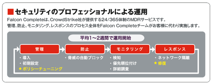 ・24時間365日体制の専門家集団(Falcon Completeチーム)によるMDRサービスが提供される
