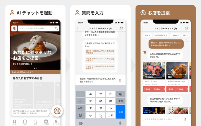 『ヒトサラ』アプリでAIチャット機能(ベータ版)をリリース〜AIがネット予約可能な飲食店を提案〜