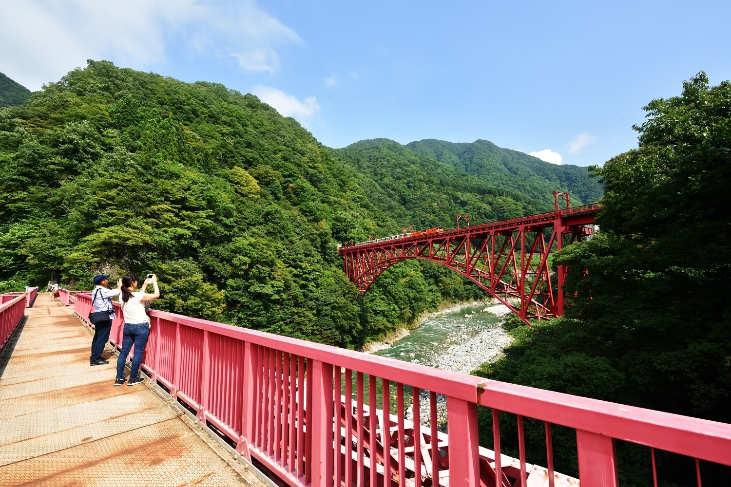 北陸新幹線 黒部宇奈月温泉駅で下車→徒歩約1分→富山地方鉄道 新黒部駅→約25分→宇奈月温泉駅で下車→徒歩約5分→黒部峡谷鉄道 宇奈月駅