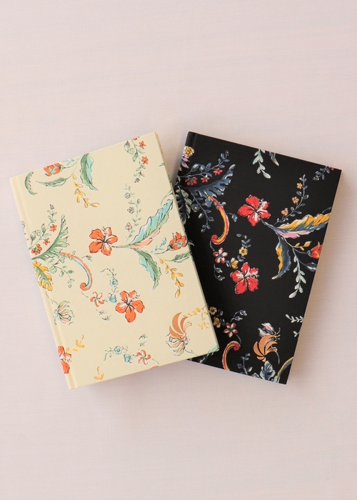 沖縄に自生する植物シマサルナシを中心にデザインしたボタニカルな小花柄。所々に花から花へと飛び回るフタオチョウを見つけるのも楽しみの1つ。シックな色合いで落ち着いた配色の1冊。