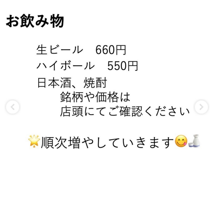 日本酒の銘柄はDMにてお問い合わせくださいませ。