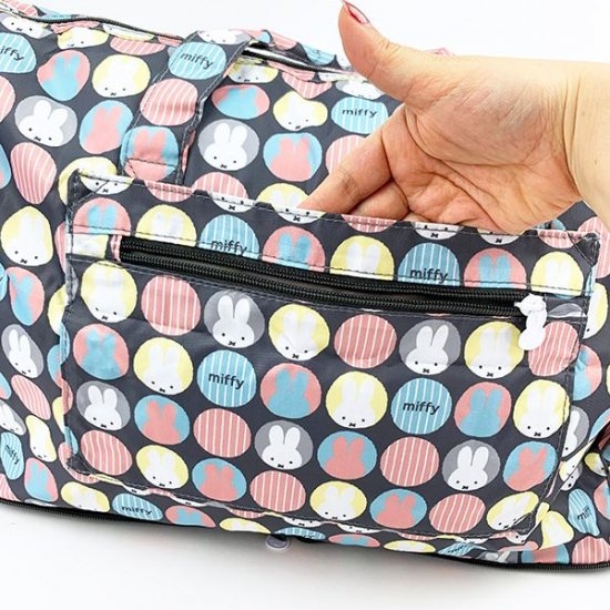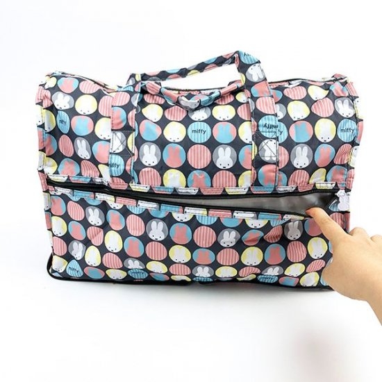 あちこちの丸い窓から覗くミッフィーが可愛いボストンバッグ。