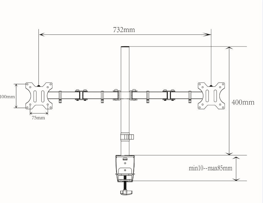 モニタアーム「FFF-MX04」は、デスクを挟み込んで固定するクランプ式、デスクの穴に差し込んで使用するグロメット式の両方に対応しており、5軸対応で、上下チルド45°左右スイーベ90°、左右回転ピボット180°と幅広く調節ができ、お好みの形状での固定が可能です。最大32インチのワイド液晶モニタ、8kgまでの液晶を2個取り付けることができます。取り付け部分は75mmと100mmのVESA規格となっております。調節用の六角レンチが、アームの根元部分に収納できるため、液晶モニタを取り付けた後、少し調整したい場合などに便利です。また、ケーブルホルダもあり、ユーザー様に満足いただけるモニタアームになっております。