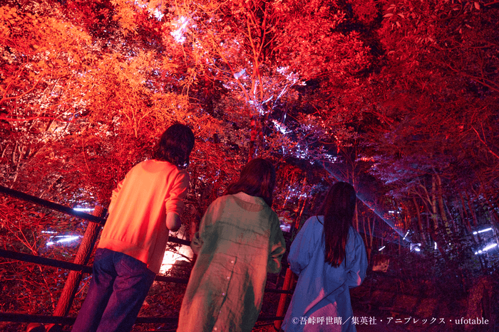 アニメ『鬼滅の刃』の世界をニジゲンノモリの大自然の中に再現。参加者は昼夜2つのイベントを通じて、『鬼滅の刃』の世界を楽しむことができる