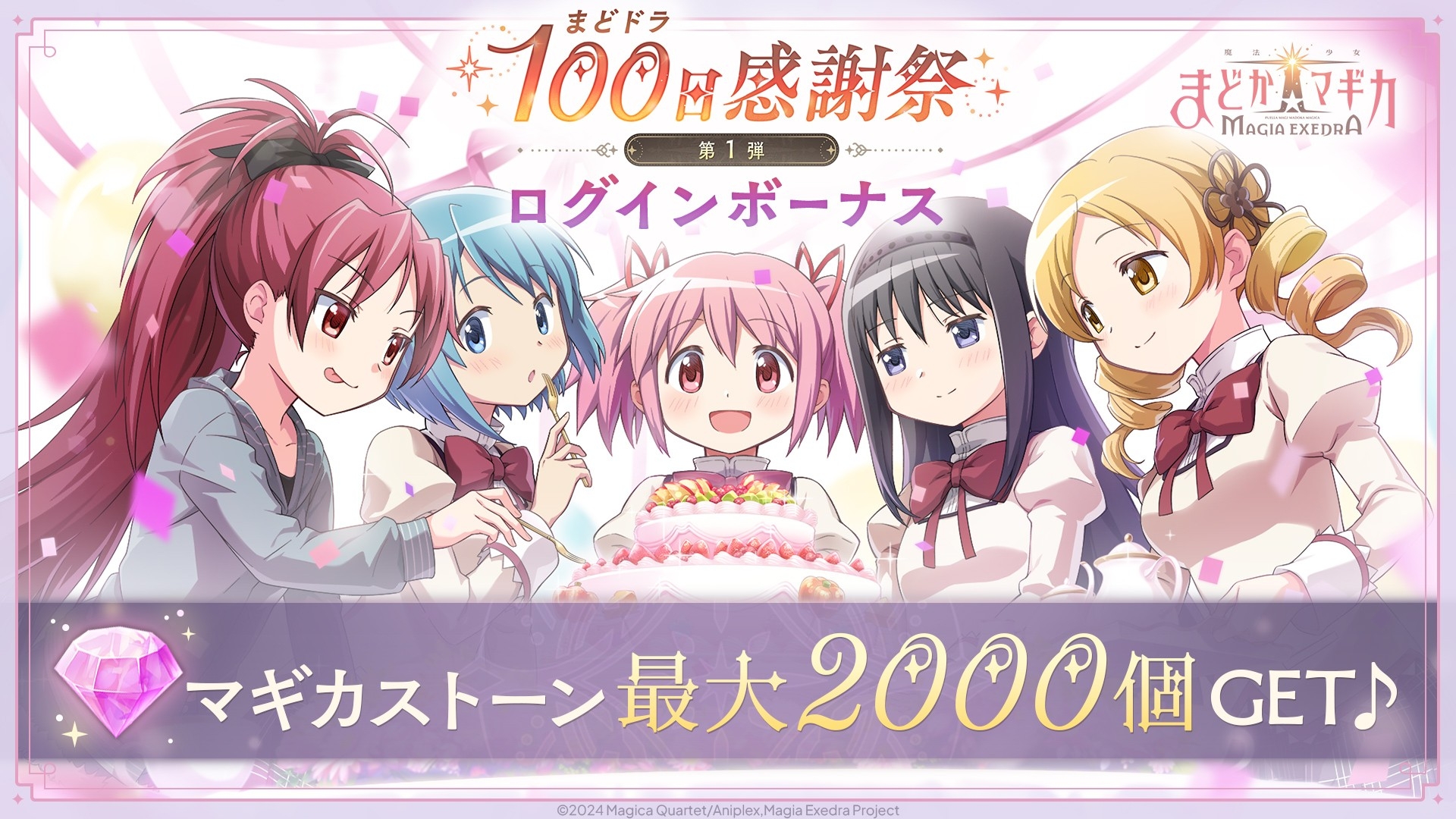 『魔法少女まどか☆マギカ Magia Exedra』、6月30日(月)12時〜「24時間限定 マギアガチャ10連1回無料」開始!100日感謝祭10大キャンペーンも開催中!