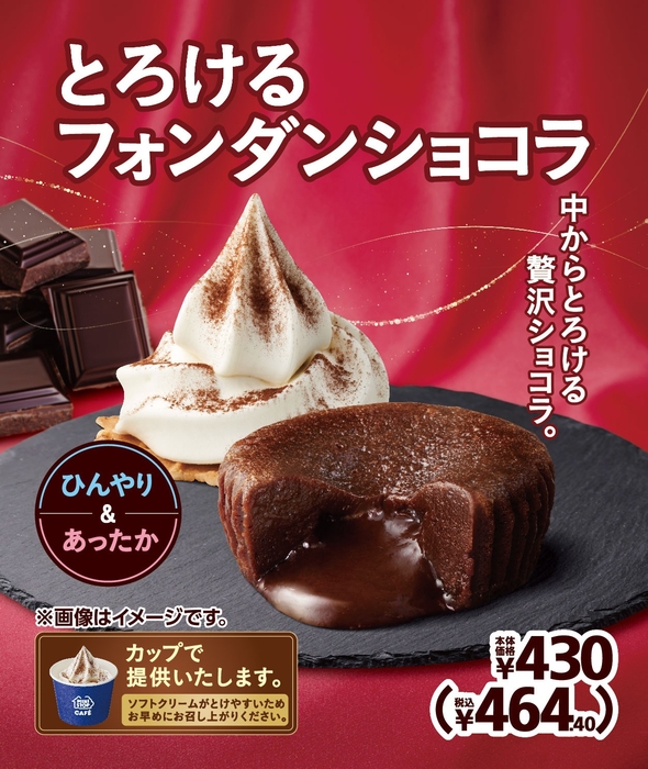 ●商品特長:ミニストップならではの、冷たいソフトクリームと温かいフォンダンショコラの「ひやあつ」スイーツをお楽しみください。
