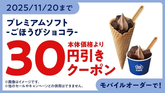 4年目となる今年のチョコソフトは、「60DAYSサステナブルチョコ」のカカオアロマの特長である「フルーティー」をより際立たせ、さらに香り高いソフトクリームに仕上げました。チョコソースとガトーショコラをトッピングした、「プレミアムソフト‐ごほうびショコラ‐」は、ミニストップならではの、チョコレート好きに捧げるチョコレートづくしスイーツです。