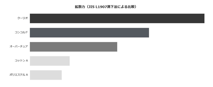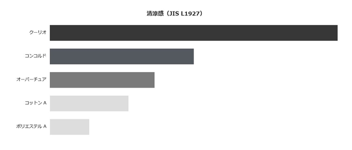 オリジナルで製造したCOOLIO(クーリオ)の強撚糸は、「清涼感」に優れた植物系再生繊維のキュプラを多く使用しています。キュプラは、繊維中に水分を多く含むこと、熱伝導率・熱拡散率が高いことなどが影響しており、COOLIO(クーリオ)の強撚糸は、繊維に触れると肌から繊維へ瞬間的に熱が移動して、冷たく感じるようにつくられています。