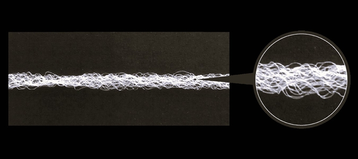 【繊維】植物系再生繊維のキュプラ×捲縮性長繊維ポリエステルを強撚したパフォーマンス糸