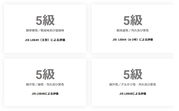 着用を繰り返しても摩擦による毛羽立ちやピリングの発生が少なく、汚れの付着、汗による変色・色褪せも起こりにくいタフな生地です。