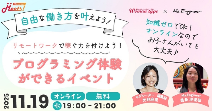 Webマガジン『Woman type』が未経験からのエンジニアデビュー応援イベントを女性向けに無料開催【Ms.Engineerによるプログラミング体験付き/11月19日(水)】