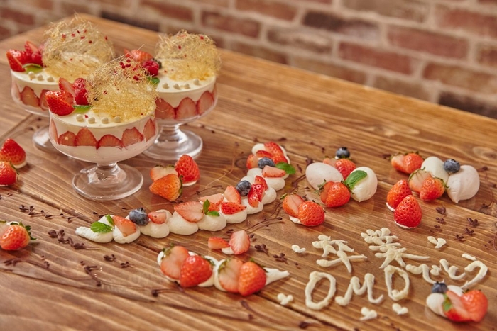 夕食後には、「ROJIURA CAFE(ロジウラカフェ)」にて、「卒業OMOでとう」というメッセージが書かれた、OMOオリジナルの〆パフェを用意します。元ボディビルダーのパティシエが開発した、いちごがふんだんに使われた華やかなパフェは、卒たびの〆にぴったり。みんなが満開の笑顔になる瞬間を、当プランの特典のインスタントカメラで収めることができます。