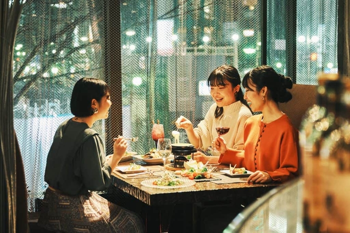 2 すすきのの街並みを眺めながら、チーズフォンデュを楽しむ