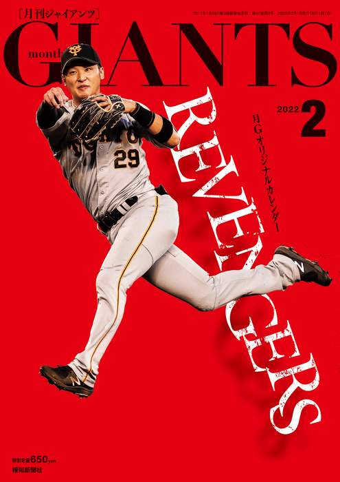 「スポーツ報知」を発行する報知新聞社(代表取締役社長・依田裕彦)は12月24日(金)から順次、全国の書店、オンライン書店などで読売巨人軍監修のファンマガジン「月刊ジャイアンツ」2022年2月号を発売します。A4版88ページオールカラー、本誌オリジナル2022ジャイアンツカレンダーをとじ込み、特別定価650円(税込)です。書店での取り寄せ注文可能、お近くのYC(読売新聞販売店)でも注文を承ります。読売巨人軍公式通販サイト「ジャイアンツオンラインストア」、ECサイト「ショップ報知」でも購入できます。