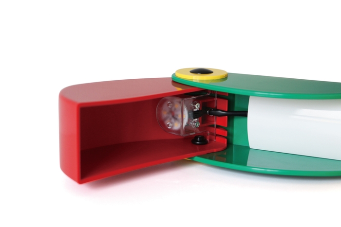 開閉式のクチバシは、照明のシェード部分として光の角度調整や、使わない時はコンパクトな状態で保管ができます。かつての電球の代わりに最新のLEDライトを搭載したことで安全性が増すだけでなく、長時間の使用も可能です。
